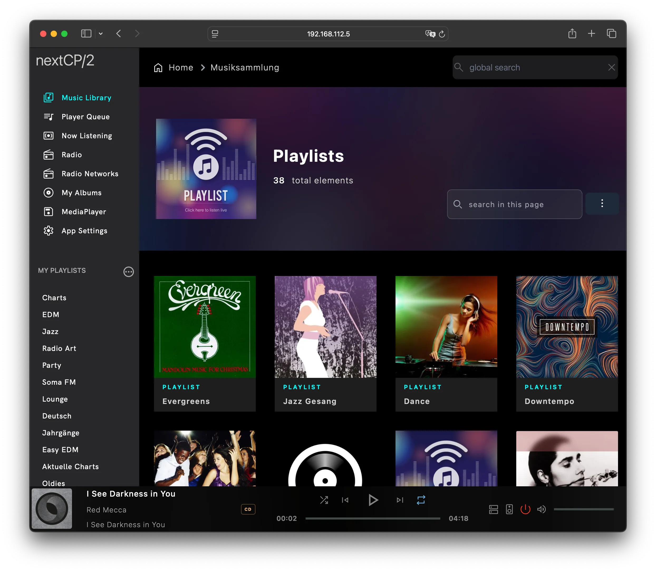 The Music Library serves as the main entry point to your entire music collection, providing a central place to browse, search, and play your audio content.